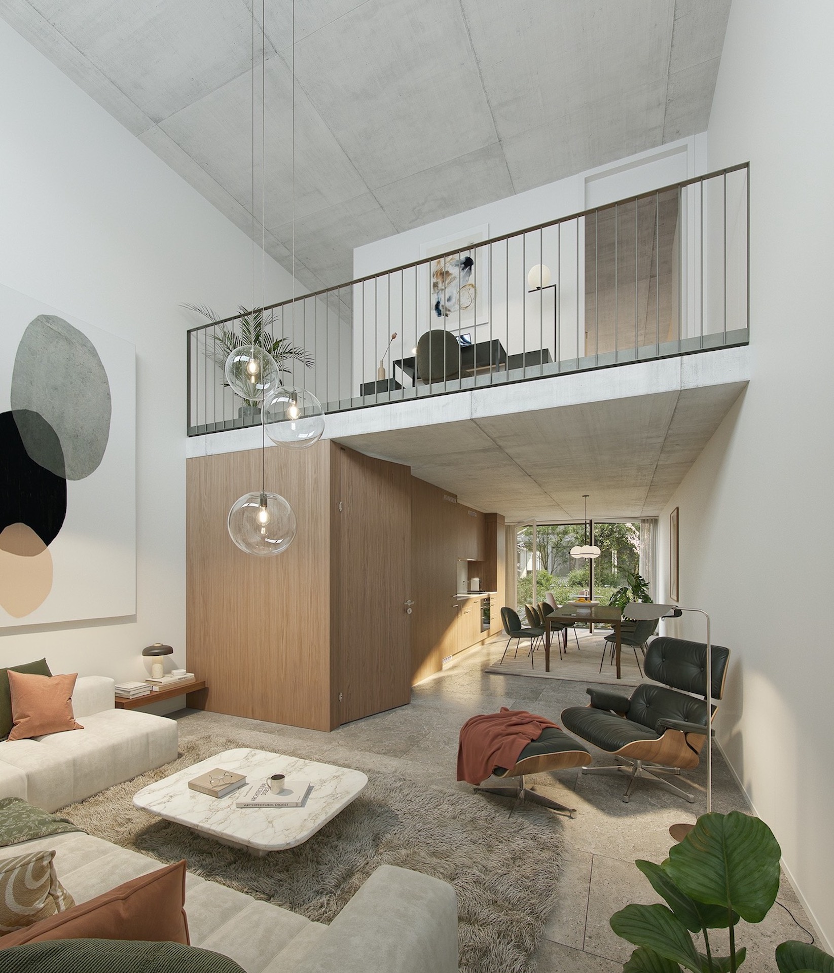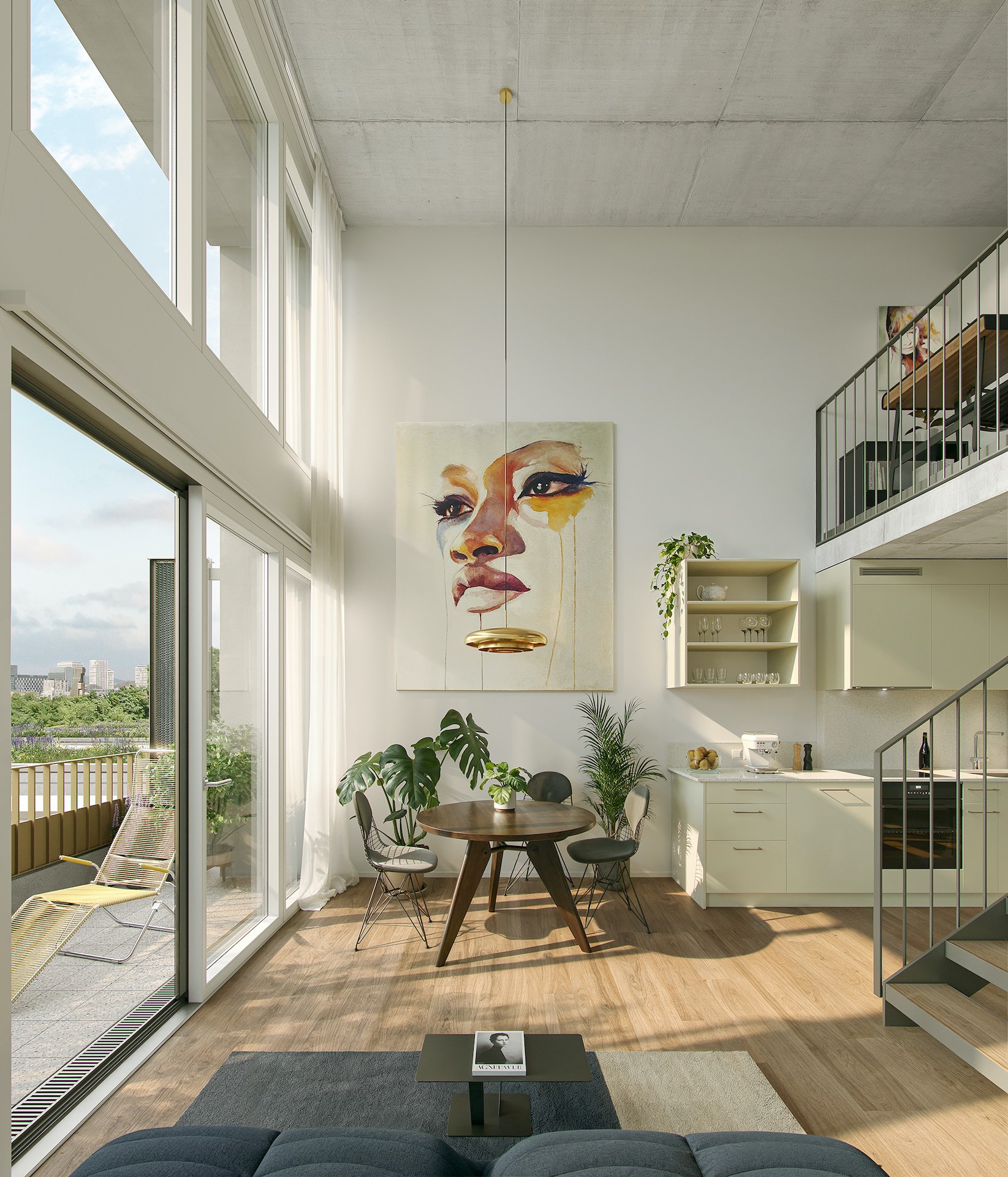 Von kompakten, loftartigen Studios über mehrstöckige Apartmentwohnungen bis hin zu grosszügigen Grand-Attika-Wohnungen mit 1.5 bis 4.5 Zimmern – die Vielfalt der Typologien ist bewusst: Hier findet jeder sein Zuhause.